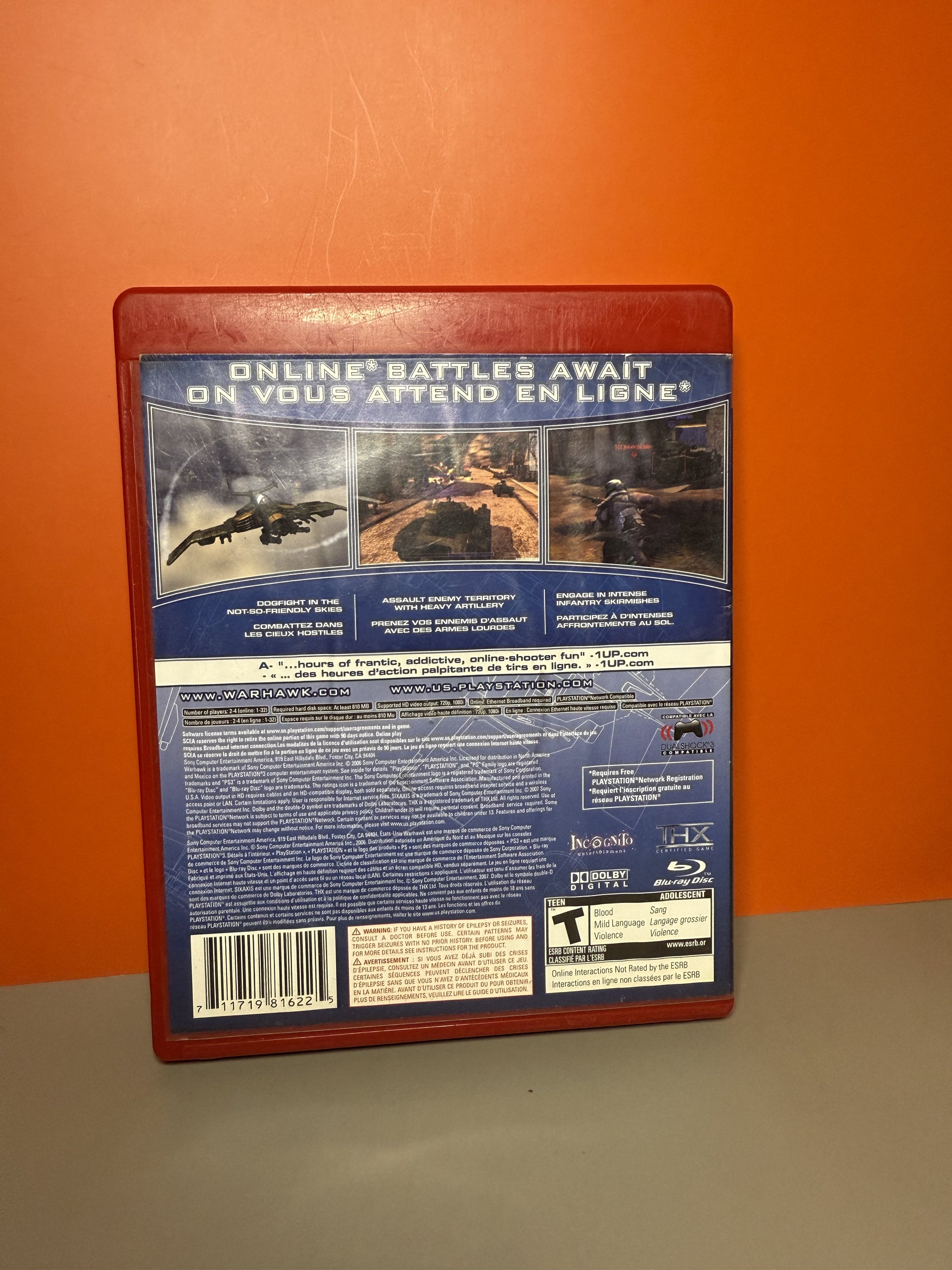 Warhawk for PS3 takes flight with explosive online battles that put you in the cockpit of futuristic aircraft and on the ground in intense combat. Strap into your Warhawk and soar across sprawling maps, dive-bomb enemy bases, and dogfight rivals in the skies with thrilling speed and precision. But the fight doesn’t end in the air—you can jump out and take the battle to the ground with tanks, jeeps, and infantry firefights.